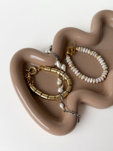 The majority of our jewelry is handmade, but we also reserve a small space in our store for the most interesting pieces found from our suppliers. Our main priority is to craft jewelry that not only creates intriguing accents but is also suitable for all occasions and remains relevant for a long time. That is why our collection is based on timeless must-haves, while bolder and brighter pieces are released in seasonal limited editions.